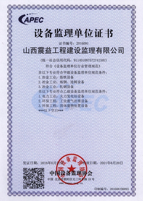 山西震益工程建設監理有限公司【原太原鋼鐵(集團)工程建設監理有限公司】成立于 1998年4月,注冊資金 600 萬元,是******批準的具有甲級執業資質的綜合性工程咨詢服務企業,具有冶煉工程、電力工程、礦山工程、房屋建筑工程、市政公用工程等5個工程監理甲級資質和設備監理甲級資質。主要業務涉及冶金、房屋建筑、礦山、電力、市政、機械、環保等領域的工程建設監理、設備監理、工程咨詢、造價咨詢、檢測試驗等。公司建立了質量ISO9001:2015標準、環境ISO14001:2015標準、職業健康******GB/T28001-2011 idt OHSAS 1800:2007標準 “三標一體”管理體系,是中國設備監理協會常務理事、中國冶金建設監理協會常務理事和山西省監理協會副會長單位。